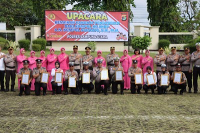 LAMPUNG UTARA – Kepala Kepolisian Resor (Kapolres) Lampung Utara, AKBP Deddy Kurniawan, S.H., S.I.K., M.M., M.Si., memimpin upacara kenaikan pangkat pengabdian dan pemberian reward