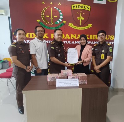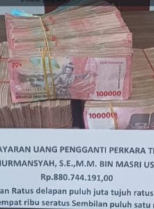 Dalam kesempatan tersebut, pihak keluarga Nurmansyah menyerahkan uang tunai tersebut atas putusan merugikan negara Rp880.744.191. Meskipun, Nurmansyah mempertanyakan dugaan keterlibatan Bendahara Eni Yuliati (EY) dan Pelaksana Kegiatan.