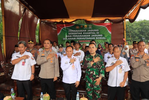 LAMPUNG UTARA – Sebagai Bentuk Polisi cinta petani guna Swasembada Pangan, Polres Lampung Utara Gelar Penanaman Jagung Serentak Kuartal III di lahan perhutanan sosial yang berada di Dusun 5 Tabak Jaya Desa Cempaka Timur Kecamatan Sungkai Jaya Kabupaten setempat, Rabu (9/7/25).