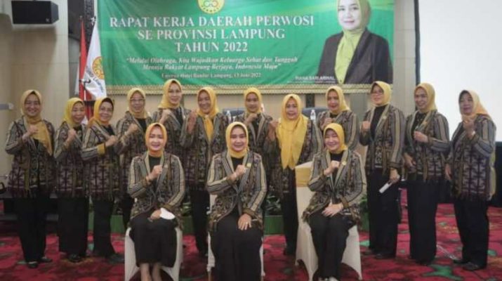 BANDAR LAMPUNG – Ketua Umum Persatuan Wanita Olahraga Seluruh Indonesia (Perwosi) Provinsi Lampung, Riana Sari Arinal, membuka Rapat Kerja Daerah Perwosi se-Provinsi Lampung Tahun 2022, di Hotel Emersia, Senin (13/06 2022).